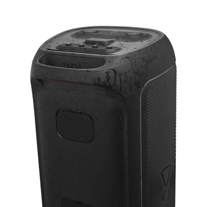 کنترل رنگ و پترن نور از طریق اپ JBL One، اتصال بیسیم چند اسپیکر، ورودی میکروفون و گیتار، ضد پاشش آب IPX4، چرخ و دسته حمل
