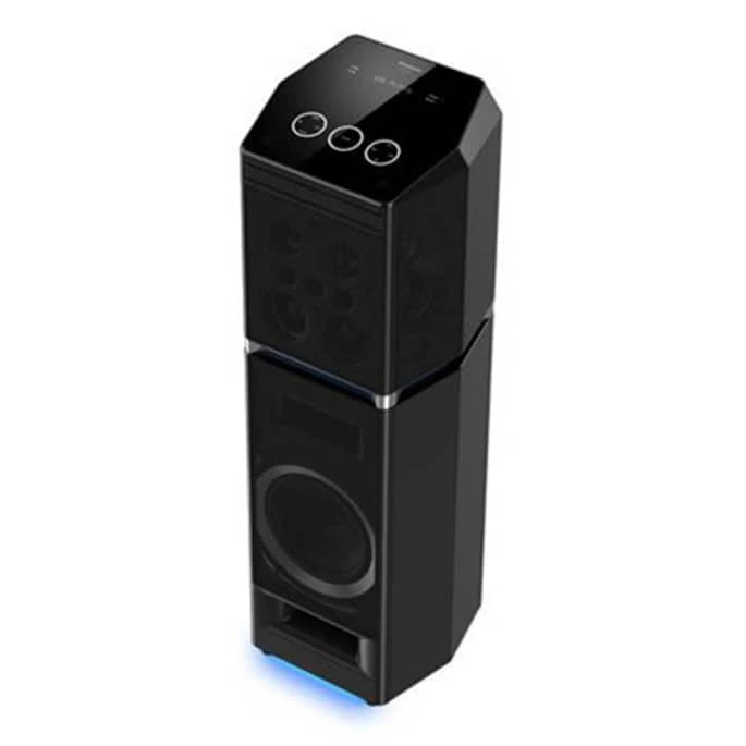 سیستم صوتی Panasonic SC-UA90 با توان خروجی ۲٬۰۰۰ وات RMS و طراحی ویژه برای مهمانیهای خانگی یا جمعهای بزرگ بسیار مناسب است. این مدل دارای دو ووفر ۲۰ سانتیمتر، چهار ووفر میدرنج ۸ سانتیمتر و چهار تیوتر ۶ سانتیمتر است که صدایی فراگیر و با بیس عمیق تولید میکند.قابلیتهای جذاب آن شامل نورپردازی «Blue Line / Downlight»، طراحی ششضلعی (Hexagon) کمجا، اپلیکیشن موبایل Panasonic MAX Juke برای کنترل از راه دور، ورودی USB دوگانه (USB Play + Rec)، بلوتوث، کنترل کیفاکتور، کارائوکه با دو جک میکروفون و افزون بر این امکانات DJ و Jukebox است.اگر میخواهی تجربهای صوتی قدرتمند همراه با سرگرمیهای مهمانی داشته باشی — Panasonic SC-UA90 گزینهای عالی خواهد بود.