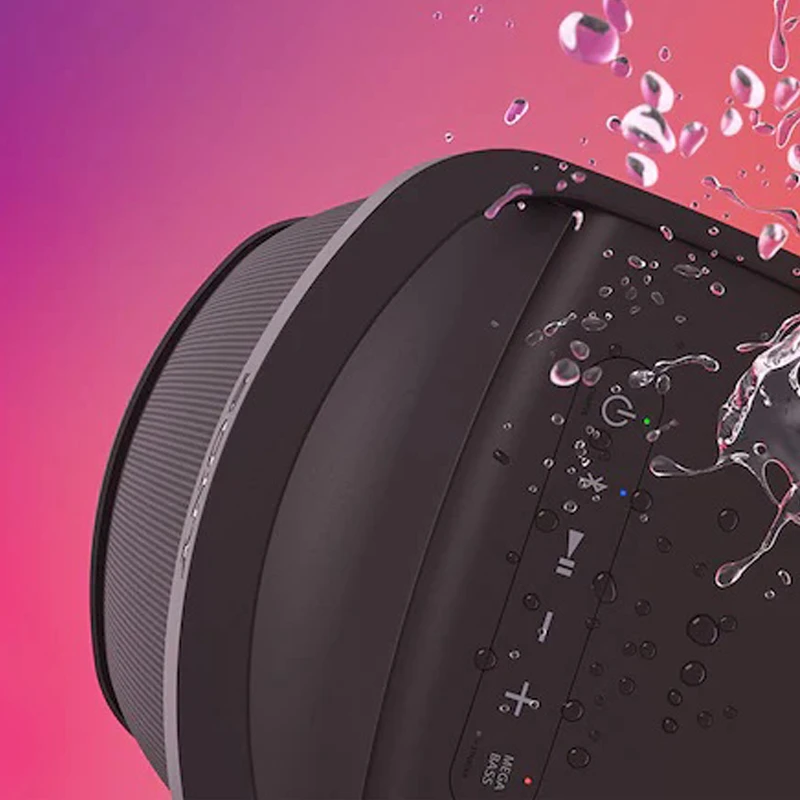 اسپیکر Sony XV 500 گزینهای عالی برای مهمانیهاست: دارای بلندگوهای X-Balanced دوبل، توییترهای جلویی، نورپردازی داخلی جذاب، ورودی میکروفون و گیتار و دوام باتری تا ۲۵ ساعت. از طرفی مقاومت در برابر پاشش آب (IPX4) به شما امکان میدهد آن را در فضای باز نیز بهکار ببرید. اگر به دنبال اسپیکری هستی که صدای قدرتمند، امکانات کارائوکه و نورپردازی داشته باشه، XV 500 انتخاب جذابیه.